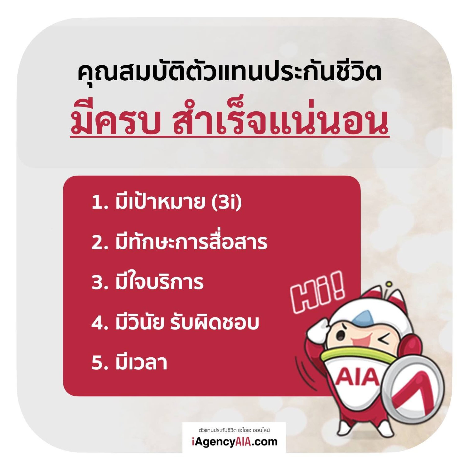 ถ้าคุณ มี "3i" นี้อยู่ในเป้าหมายของคุณ ยินดีด้วย คุณมีคุณสมบัติ เป็นตัวแทนประกันชีวิต